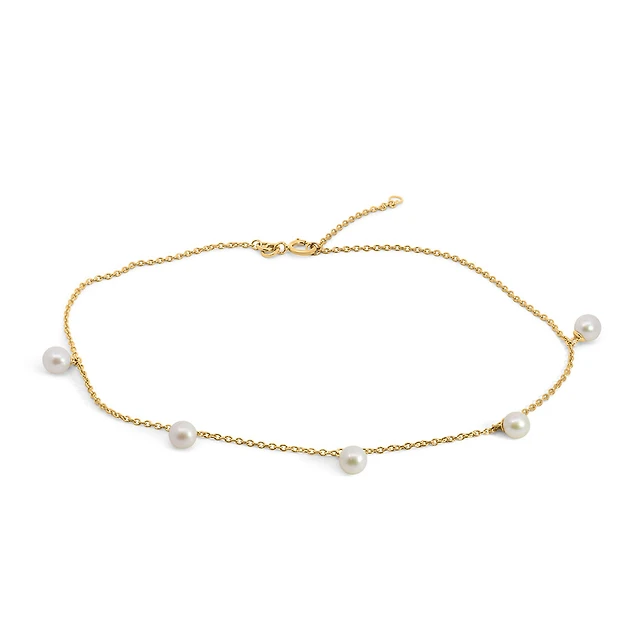 9″+1″ Cosmic Anklet with Pearls in 10kt Yellow Gold