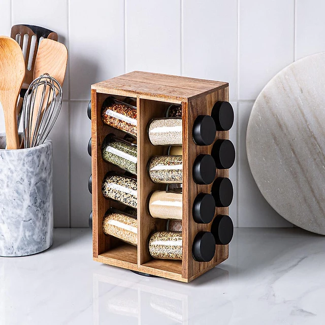 KSP Sienna Revolving Spice Rack - Set of 16 (Acacia)