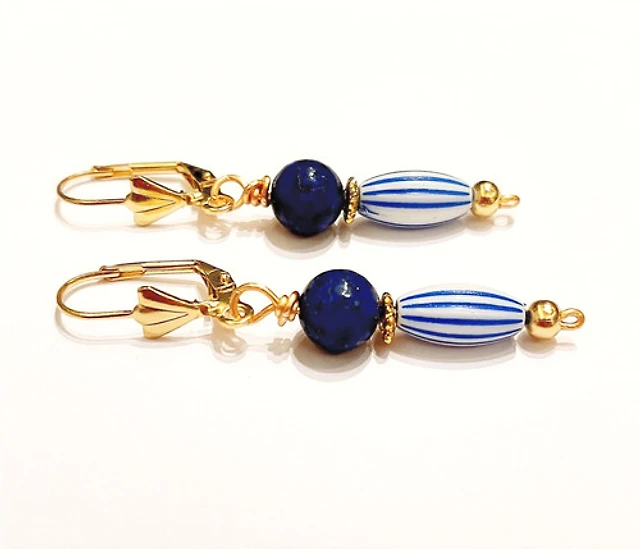 Blue Lapis Lasuli Bracelet Drum Porcelain