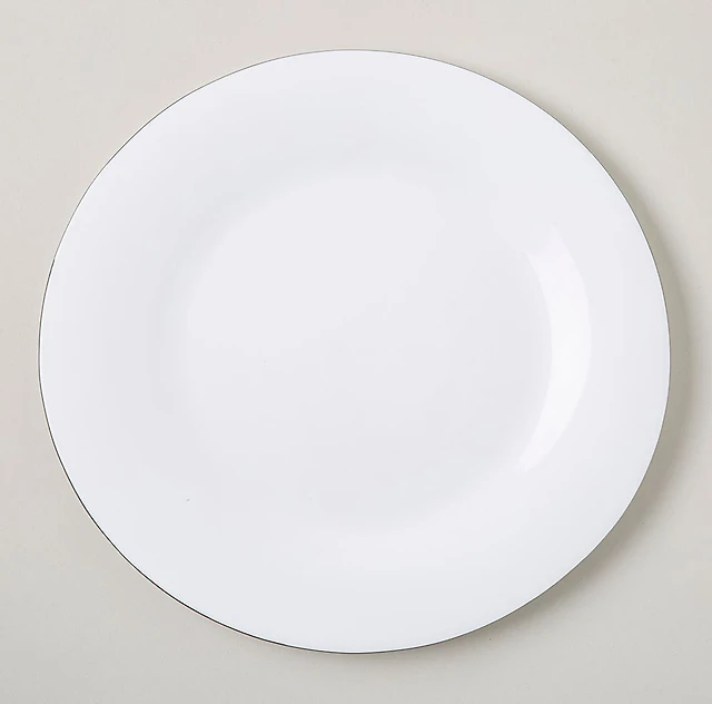 KSP Opal 'Banded' Glass Dinner Plate (White/Silver)