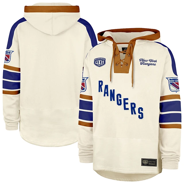Men's '47 Cream New York Rangers Blue Line Heritage Lacer Pullover Hoodie