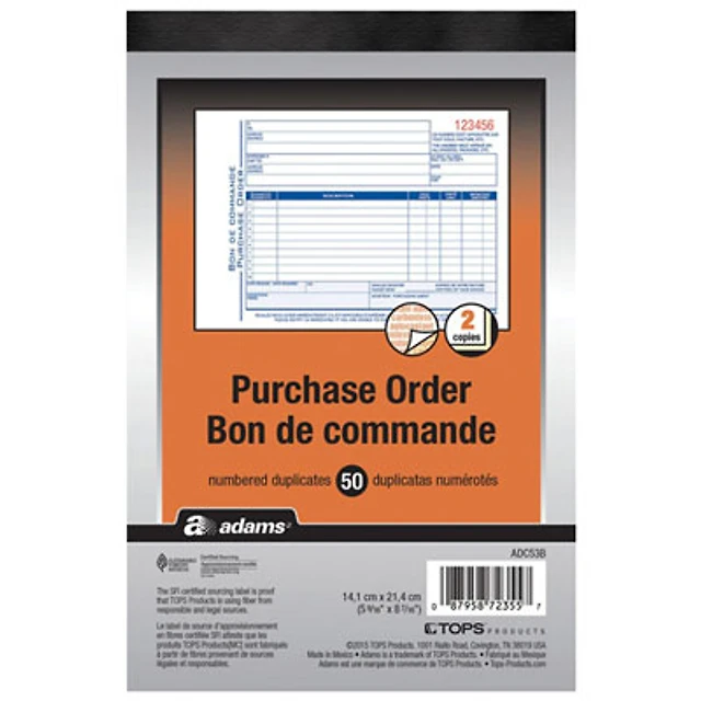 Adams Purchase Order Form - 50 Sheet(s) - 2 Part - 8.43" x 5.56" Form Size