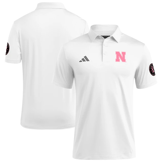 Men's adidas White Nebraska Huskers Wear Pink Breast Cancer Awareness Polo