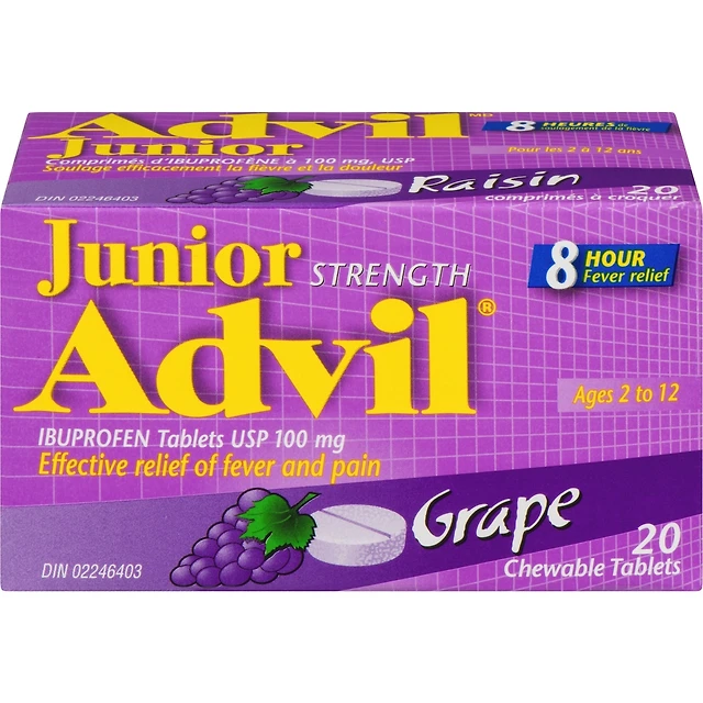Junior Strength Pain Reliever and Fever Reducer Ibuprofen Chewable Tablets, Grape