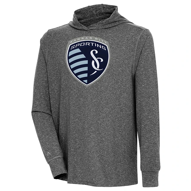Men's Antigua Heather Black Sporting Kansas City Saga Long Sleeve Hoodie T-Shirt