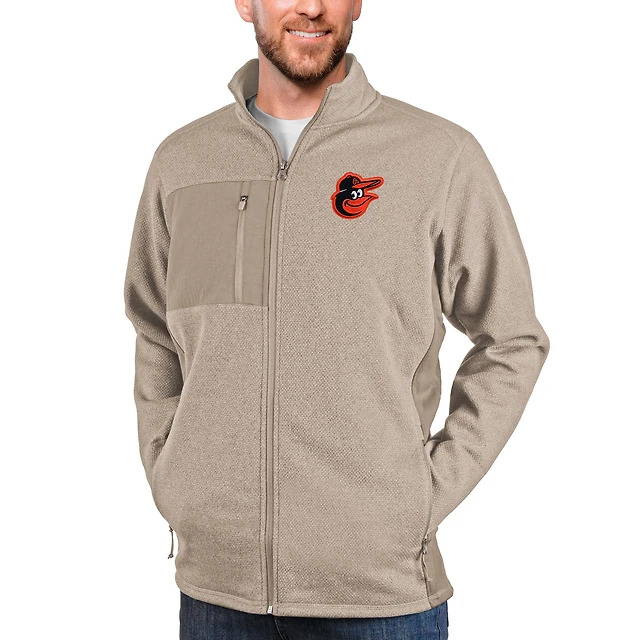 Men's Antigua Oatmeal Baltimore Orioles Course Full-Zip Jacket