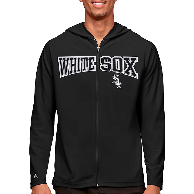 Men's Antigua Black Chicago White Sox Wordmark Legacy Full-Zip Hoodie