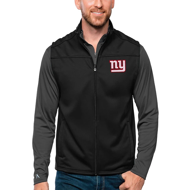 Men's Antigua Black New York Giants Links Full-Zip Golf Vest