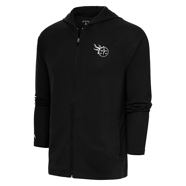 Men's Antigua Black Tennessee Titans Metallic Logo Legacy Full-Zip Hoodie