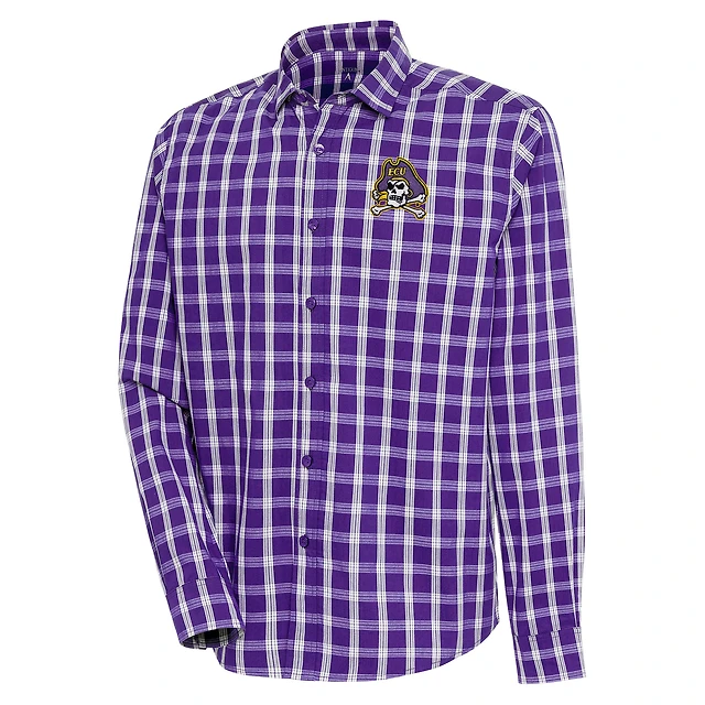 Men's Antigua Purple ECU Pirates Carry Long Sleeve Button-Up Shirt