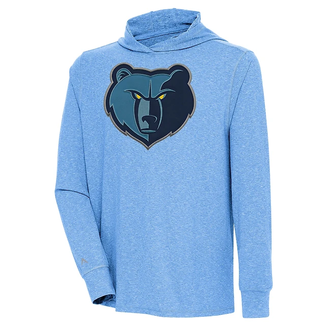 Men's Antigua Powder Blue Memphis Grizzlies Saga Long Sleeve Hoodie T-Shirt
