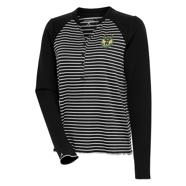 Women's Antigua Black Milwaukee Bucks Maverick Long Sleeve Henley T-Shirt