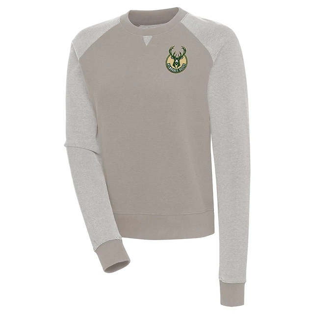 Women's Antigua Oatmeal Milwaukee Bucks Flier Bunker Tri-Blend Pullover Sweatshirt
