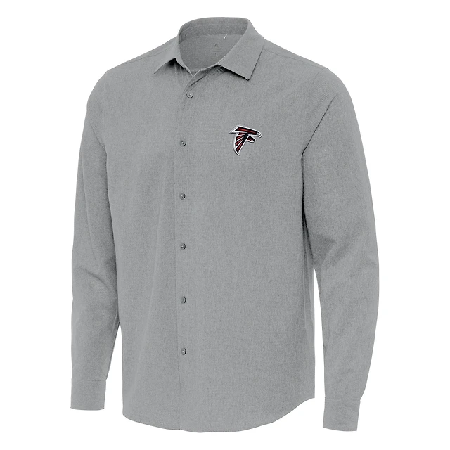 Men's Antigua Gray Atlanta Falcons Exposure Woven Long Sleeve Button-Up Shirt
