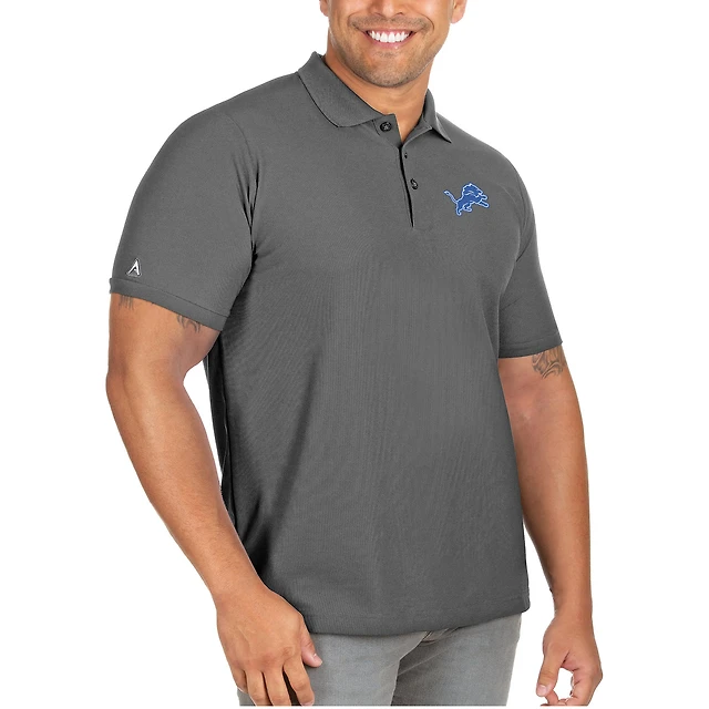 Men's Antigua Charcoal Detroit Lions Big & Tall Legacy Pique Polo