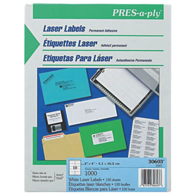 Avery Pres-A-Ply 3-21/64" x 4" Standard Laser Shipping Label (AVE30604) - 600 Pack - White