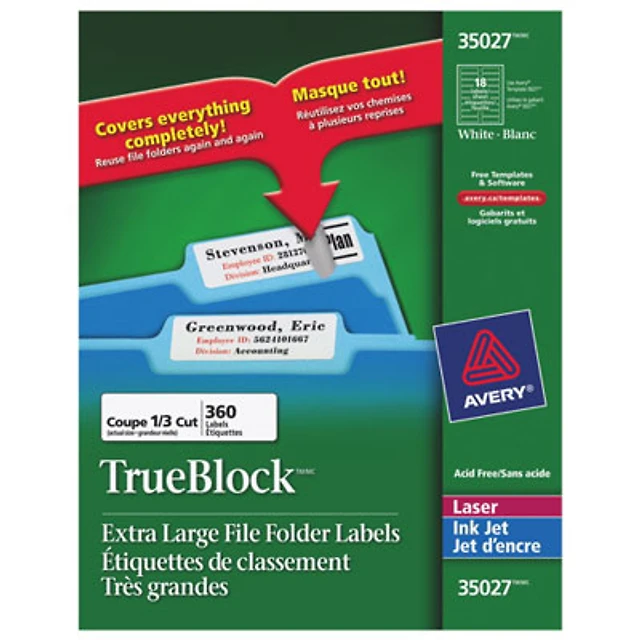 Extra large Avery Filing Labels (AVE35027) - 360 Pack - White