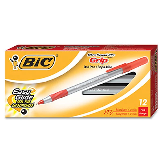 BIC Round Stic Ballpoint Pen (BICGSM11-RD) - 12 Pack - Red