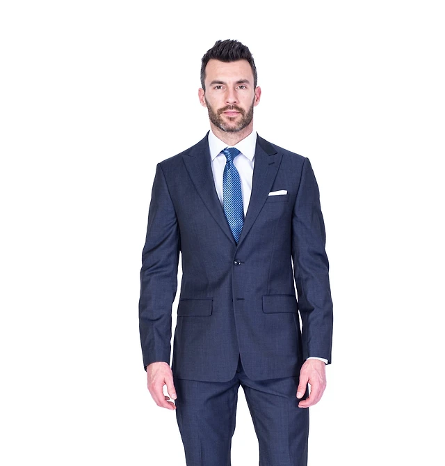 X-Fit Textured Peak Lapel Stretch Suit - Navy