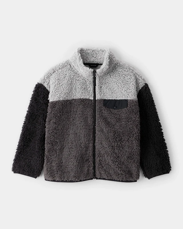 Boys Sherpa Long-Sleeve Zip-Up Jacket - Cream/Navy