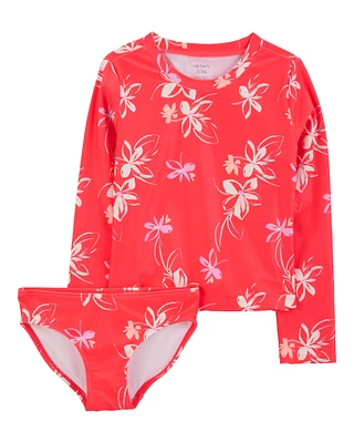 Girls 2-Piece Floral Print Long-Sleeve Top & Skirt Set