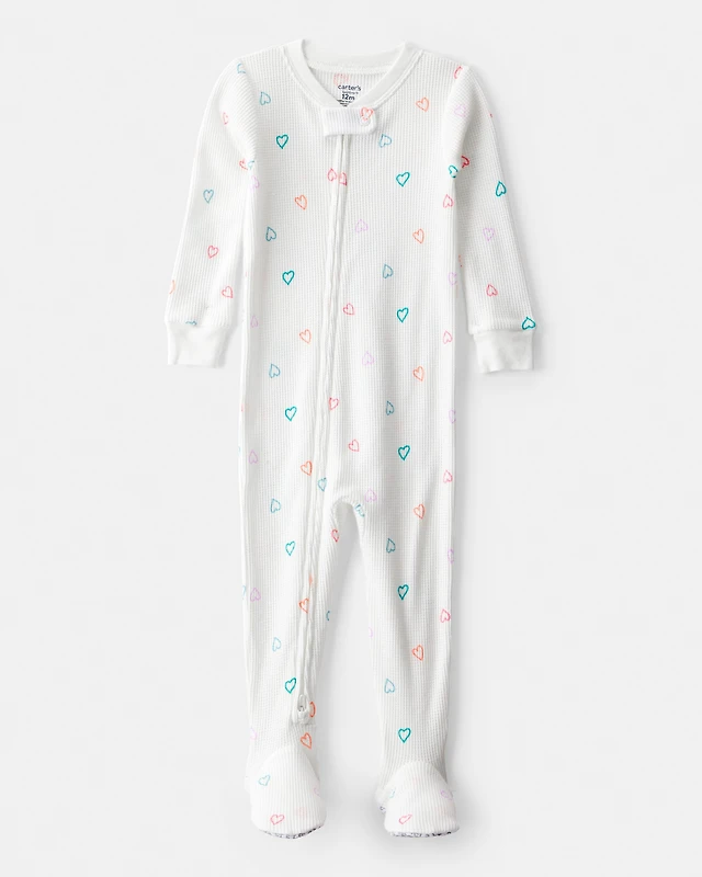 Toddler Girl Heart Cotton Snug Fit Footie 1-Piece Pyjamas - White