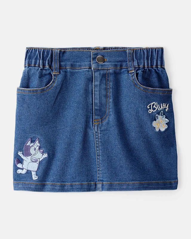Toddler Girl Bluey Embroidered Denim Skirt - Blue