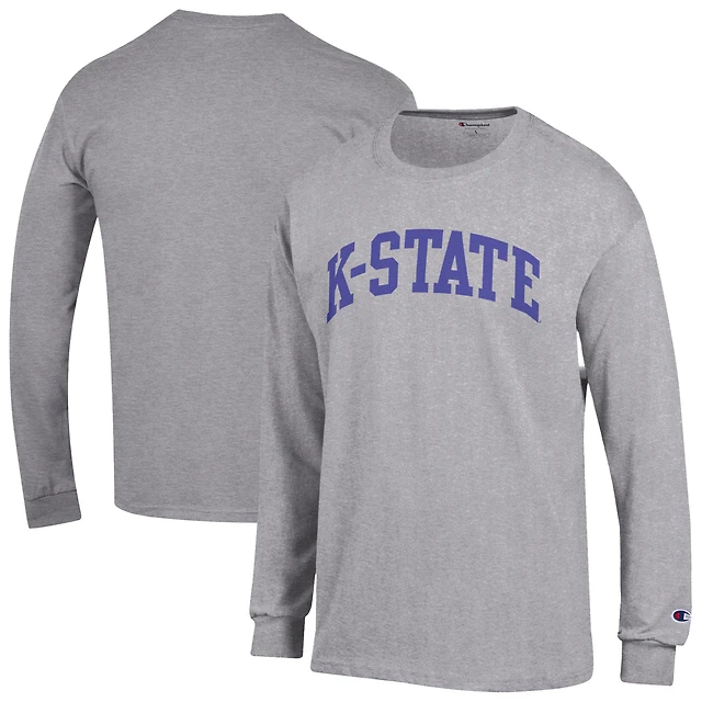 Men's Champion Heather Gray Kansas State Wildcats Basic Arch Long Sleeve T-Shirt