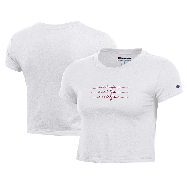 Women's Champion White USC Trojans Core Script Baby Cropped T-Shirt