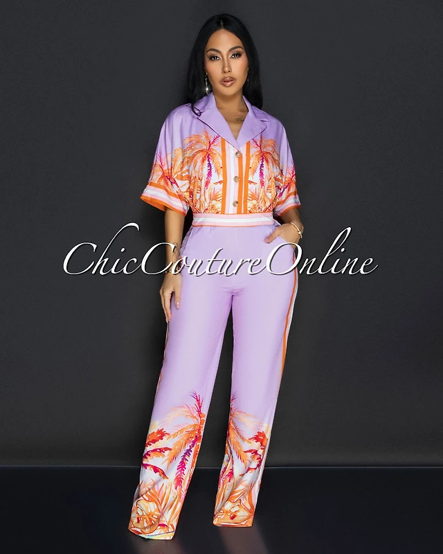 Aleka Lilac Orange Collared Wide Legs Jumpsuit