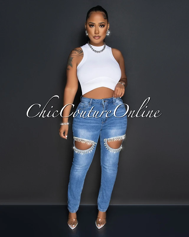 *Rallie Medium Denim Rhinestones Key-Hole Jeans