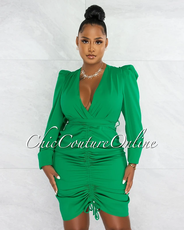 *Randall Kelly Green Front Ruch Tie Belt Midi Dress