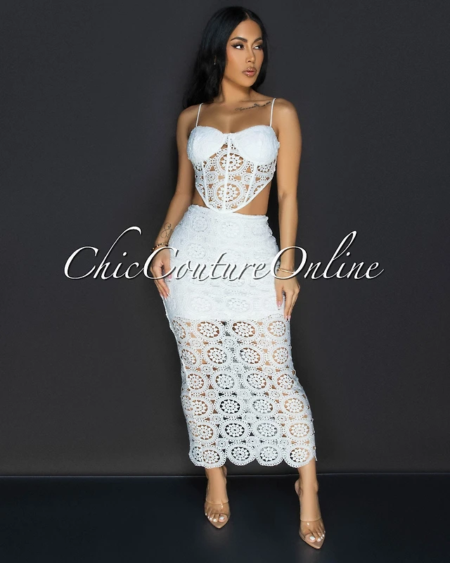 Ume White Eyelet Bustier & Skirt Two Piece Set