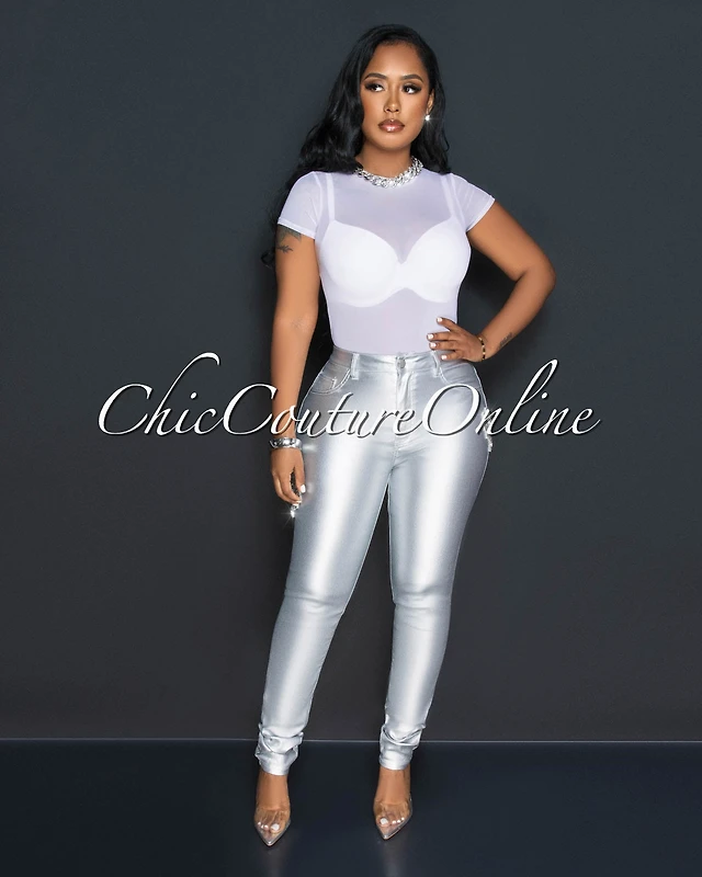*Teena Silver Rhinestones Hearts High Waist Skinny Jeans
