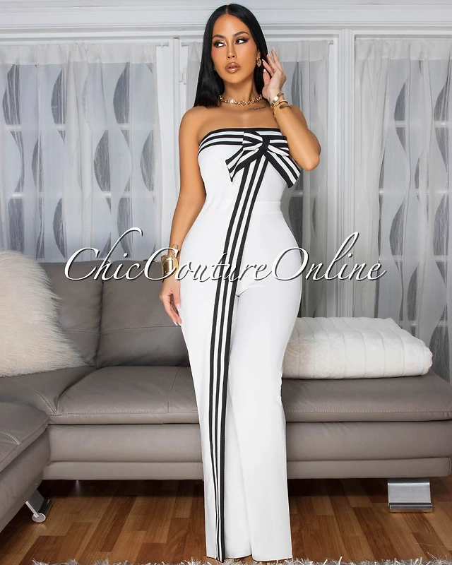 Bendie Off-White Bow Accent Strapless Jumpsuit (SHIPS 3/10)