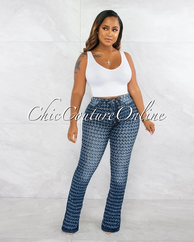 *Brian Dark Denim Perforated Distressed Bell Legs Jeans