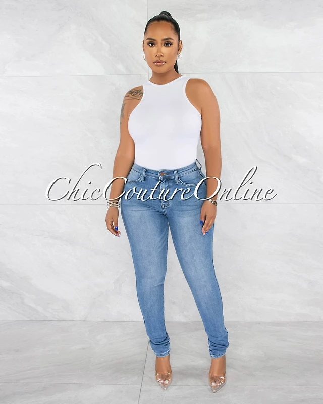 *Carlisle Light Washed Denim Mid Waist Jeans