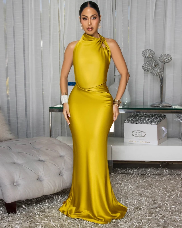 Dahlia Moss Draped Halter Maxi Dress (9/3/25)