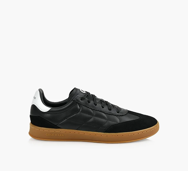 GrandPrø Rally Laser Cut Black Leather Lace-Up Sneaker