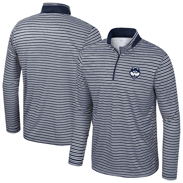 Men's Colosseum Navy UConn Huskies Striped Quarter-Zip Top