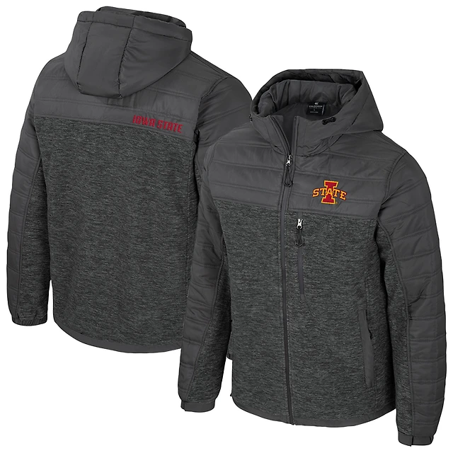 Men's Colosseum Charcoal Iowa State Cyclones Nightman Full-Zip Hoodie Puffer Jacket