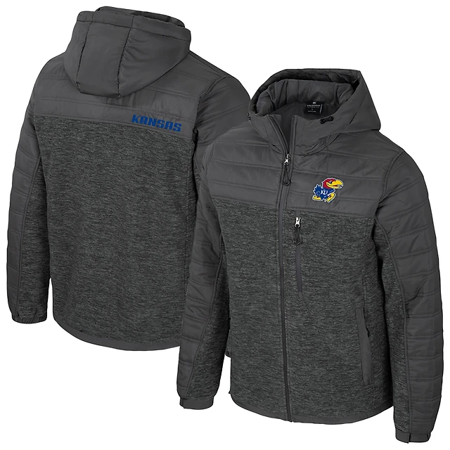 Men's Colosseum Charcoal Kansas Jayhawks Nightman Full-Zip Hoodie Puffer Jacket