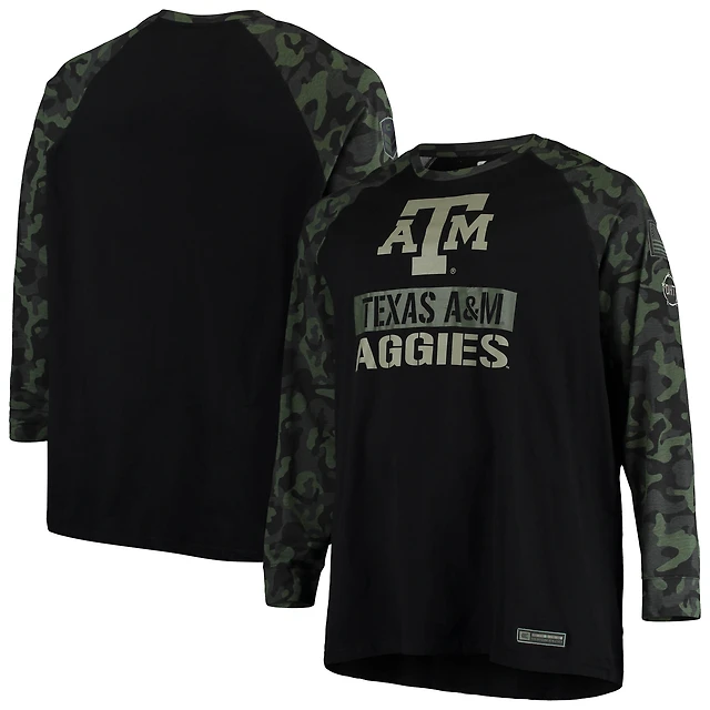 Men's Colosseum Black/Camo Texas A&M Aggies OHT Military Appreciation Big & Tall Raglan Long Sleeve T-Shirt