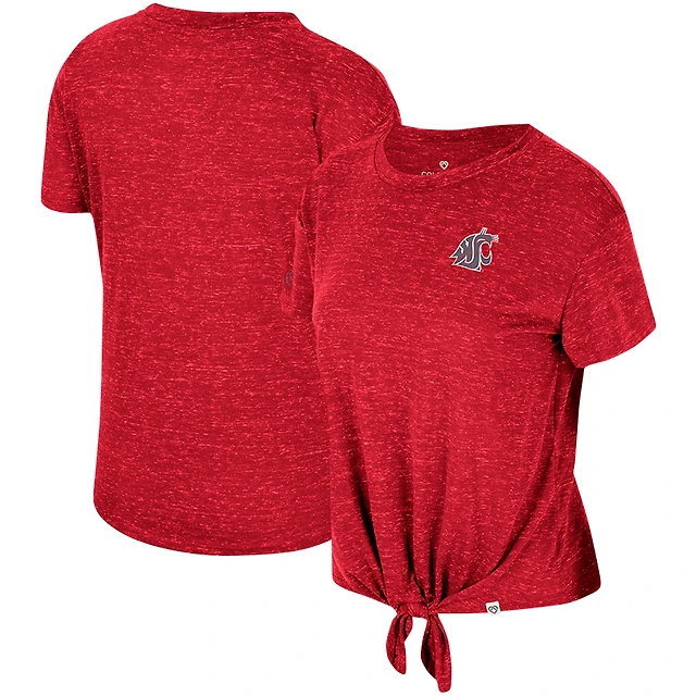Women's Colosseum Crimson Washington State Cougars Finalists Tie-Front T-Shirt