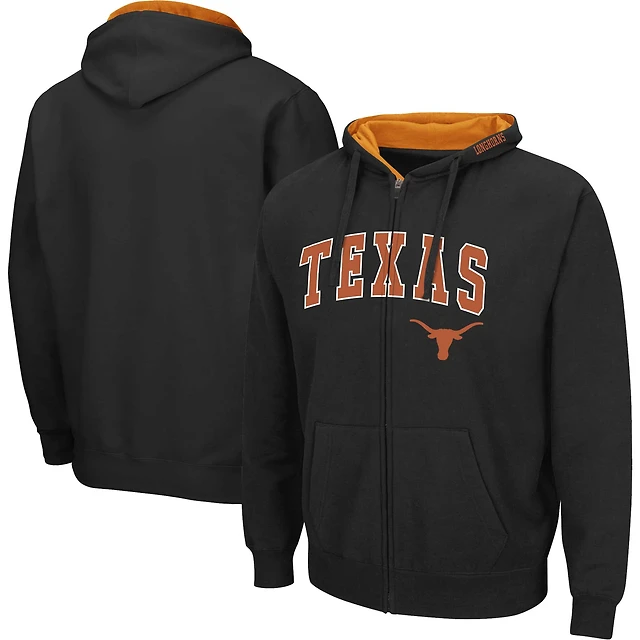 Men's Colosseum Black Texas Longhorns Arch & Team Logo 3.0 Full-Zip Hoodie