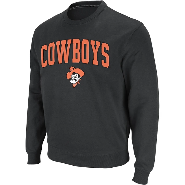 Men's Colosseum Charcoal Oklahoma State Cowboys Arch & Logo Crew Neck Sweatshirt