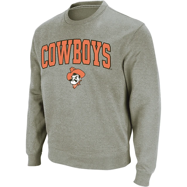 Men's Colosseum Heather Gray Oklahoma State Cowboys Arch & Logo Crew Neck Sweatshirt
