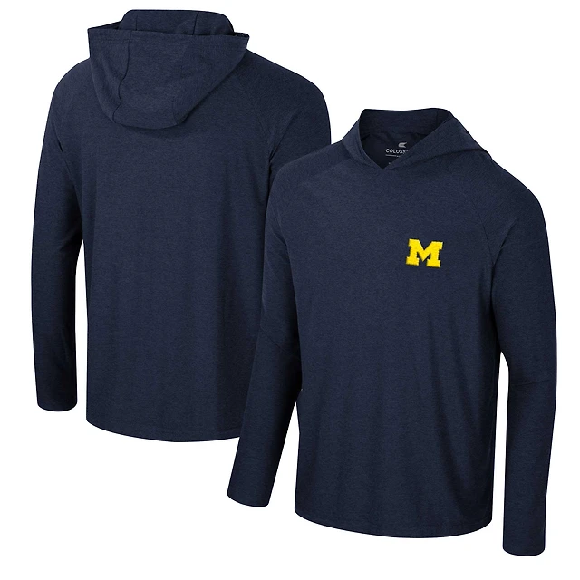 Men's Colosseum Navy Michigan Wolverines Cloud Jersey Raglan Long Sleeve Hoodie T-Shirt
