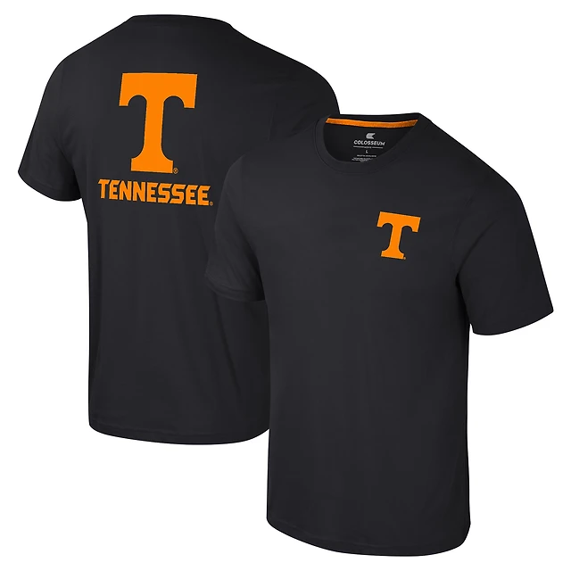 Men's Colosseum Black Tennessee Volunteers Logo Lockup 2-Hit Active Blend T-Shirt