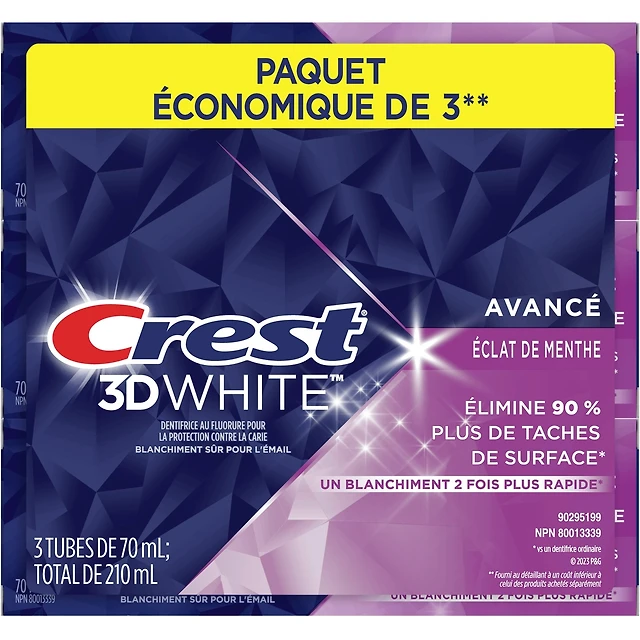 3D White Advanced, Whitening Toothpaste Radiant Mint, 70- mL, Pack of 3